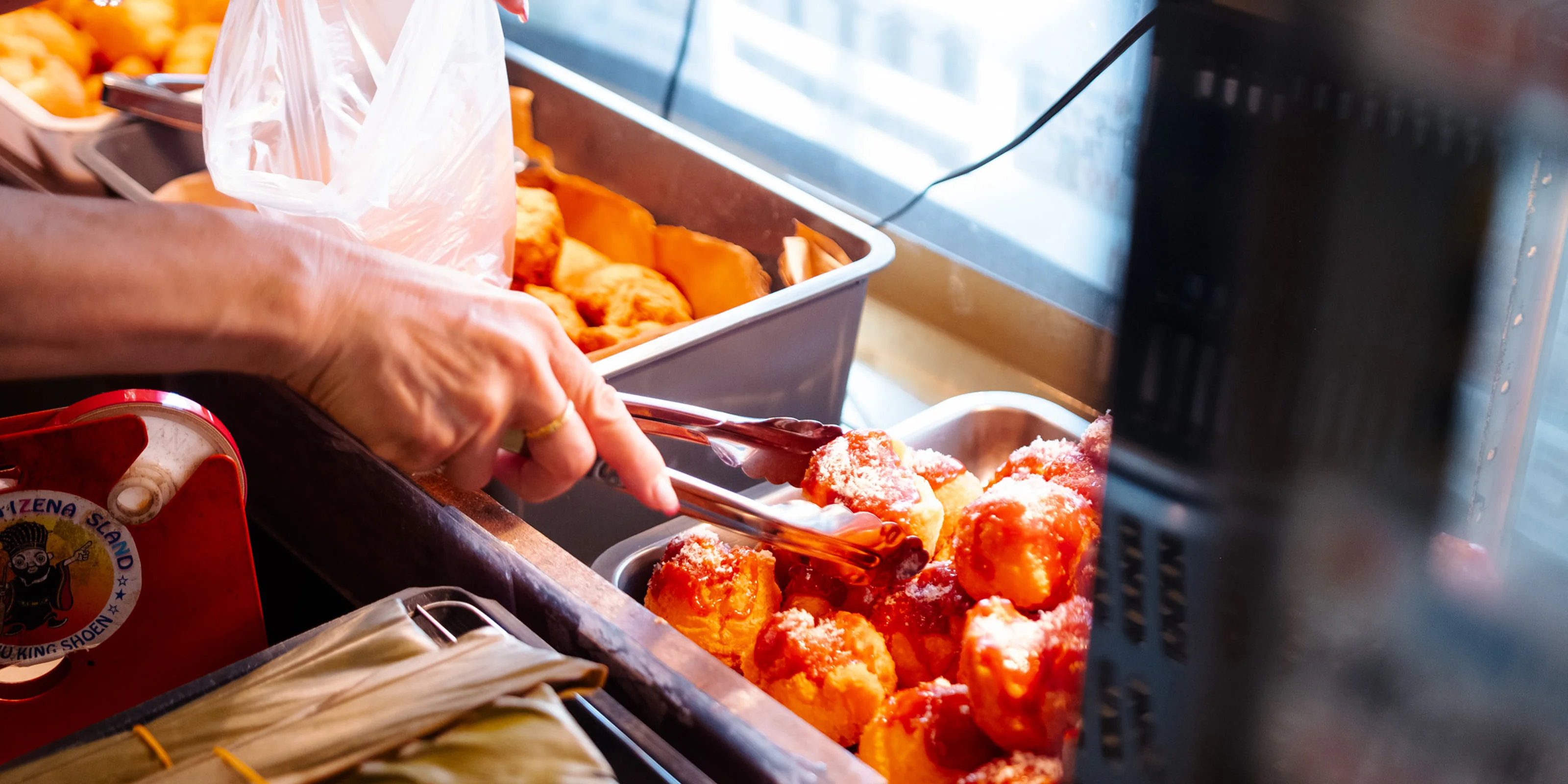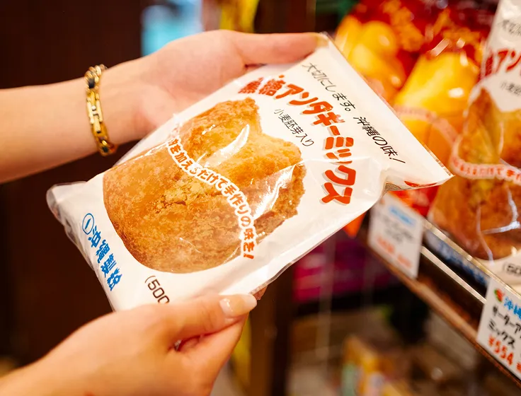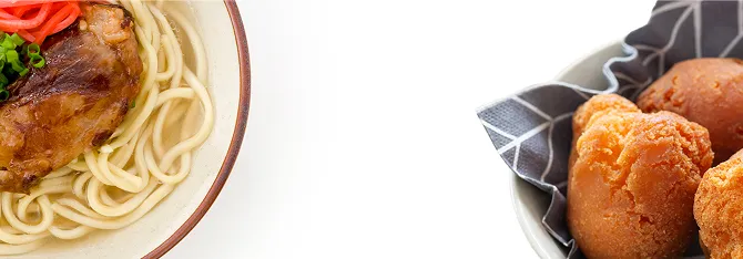 おきなわ物産センターの味の中心にあるのは、毎朝仕込む自家製の沖縄そば麺と、やさしい甘さのサーターアンダギー。