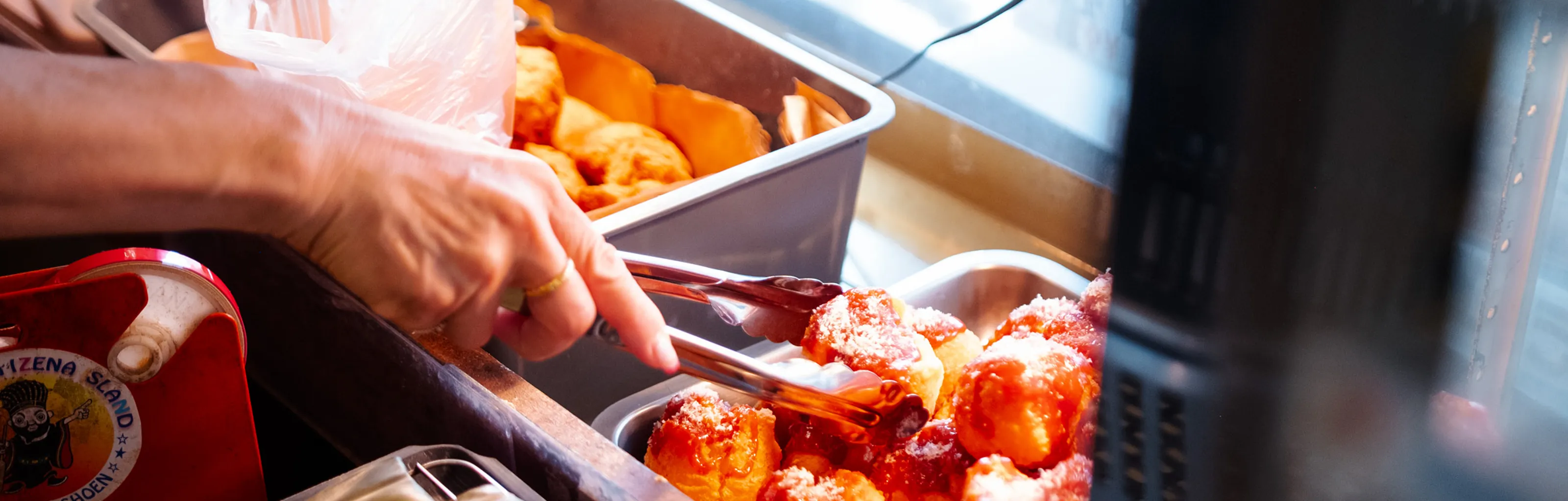創業当時から受け継ぐ製法で、毎日ていねいに仕込む自家製麺と優しい味が自慢のアンダギー。