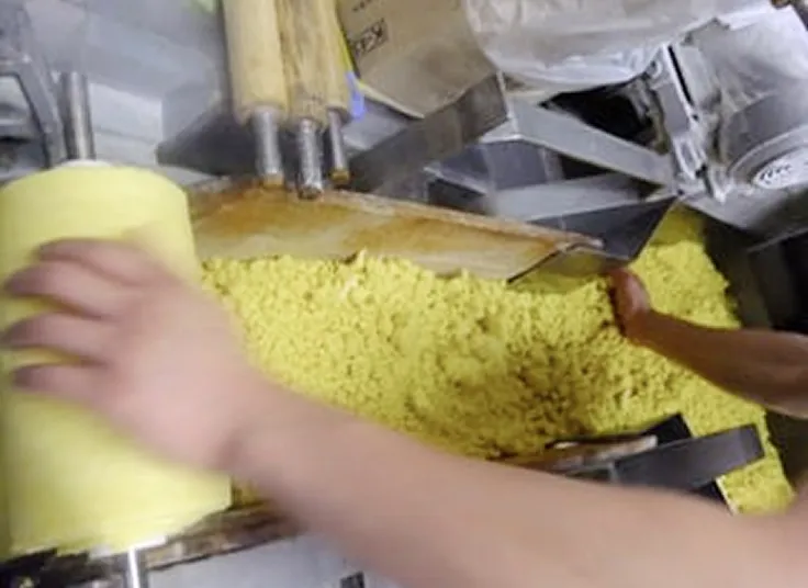 沖縄そばの麺生地は、ていねいに仕込んだ後、半日かけてじっくり熟成させます。